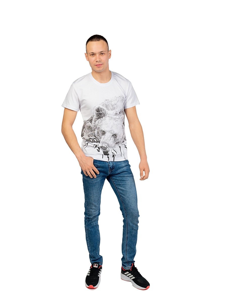 Футболка с коротким рукавом – базовая модель в мужском гардеробе. Настоящая находка для постоянного ношения летом – белая футболка с выразительным принтом. В нашем каталоге – классическая модель слегка приталенного кроя, средней длины, с округлым вырезом. Анималистский принт создает брутальный образ, подойдет и мальчикам, и юношам, и взрослым мужчинам. Сочетается с джинсами, бриджами, джинсовой и кожаной курткой, ветровкой, паркой, бомбером. Одежда универсальная – можно надеть на прогулку, в гости, в поездку, на работу и учебу при отсутствии дресс-кода. Материал – трикотаж из 100% натурального хлопка. В такой одежде тело дышит, испарения впитываются, кожа не натирается и не раздражается. Ткань не салится, рисунок не выцветает, изделие не деформируется и не покрывается катышками. Размерный ряд – с 48 по 66.