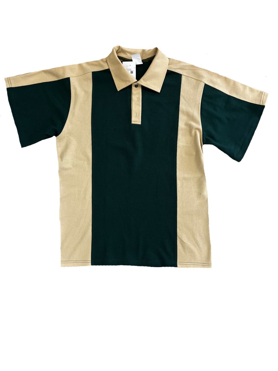 Рубашка поло мужская короткий рукав изумруд (бежевый ворот и планка) пике