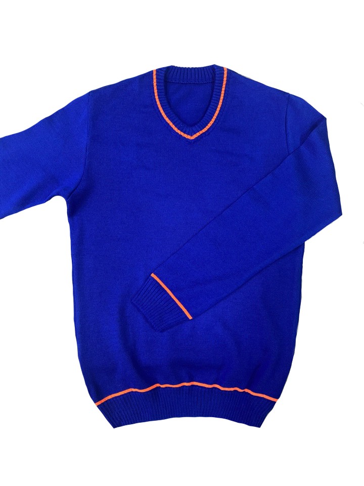 Джемпер мужской вязаный васильковый с оранж.полосками V-обр.вырез (арт. Д11010) купить в #SOTBIT_REGIONS_UF_SK# - Трикотажные Джемпер оптом от производителя