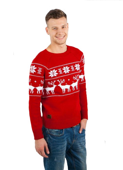 Вязаный джемпер – незаменимая вещь в мужском гардеробе зимой и в межсезонье. Характерная особенность фасона – круглая горловина с короткой застежкой или без неё. Джемпер с орнаментом «Олени» сделает его обладателя одновременно стильным, брутальным и нарядным. В нашем каталоге – классический образец скандинавского свитера с оленями. Он состоит из трех контрастных частей. Скандинавские свитера и джемперы выполняют жаккардовым вязанием – это плотный, теплый, но одновременно тонкий трикотаж, облегающий фигуру. Такая одежда станет прекрасным подарком близкому человеку.