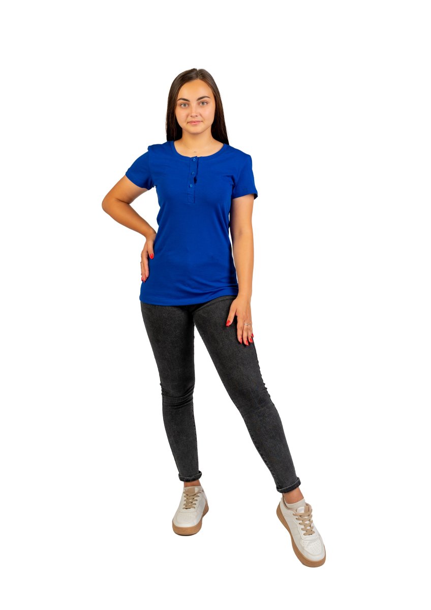 Футболка-поло с коротким рукавом – удачный гибрид традиционной футболки и классической рубашки поло. От футболки она отличается наличием прямой фронтальной застежки на пуговицах, от рубашки – отсутствием отложного воротника. Горловина оформлена круглым вырезом, застежка облегчает надевание и снимание одежды. Для этой модели характерны простота кроя, лаконичный дизайн, отсутствие декора, монохромность. Именно эти черты делают футболку универсальной, позволяя комбинировать её с одеждой в разных стилях, преимущественно кэжуал и спортивном. Она сочетается с джинсами, спортивными брюками, шортами, юбками. Футболку поло можно надеть на прогулку, на занятия танцами или фитнесом, она уместна в поездке и на отдыхе. Модель доступна в шести цветовых решениях и линейке размеров от 44 до 58. Материал – 95% х/б 5% лайкра. Это прочный «дышащий» трикотаж. За счет хлопковой основы он хорошо отводит испарения и влагу от кожи, не вызывает раздражения, не электризуется. Лайкра обеспечивает эластичность ткани, создавая привлекательный полуприлегающий силуэт.