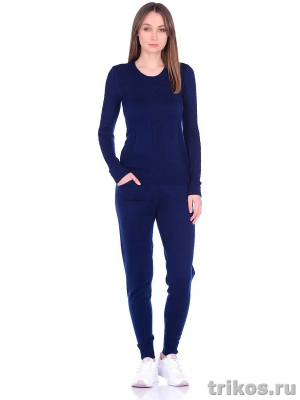 Владелица этого трикотажного вязаного комплекта непременно оценит его комфортность и теплоту. Брючный костюм в спортивном стиле из фактурного трикотажа можно надеть на прогулку, дружеские посиделки,в поход по ближайшим магазинам, в поездку. Он отлично подойдет в качестве домашней одежды. Прилегающий силуэт, длинные рукава, фиксирующие низ штанин манжеты визуально вытягивают фигуру, а классический круглый вырез горловины подчеркнет овал лица, шею и плечи. Ансамбль однотонный, в качестве декора выступает популярный объемный узор «косы». Размерный ряд от 40 до 54. Покрой и вязаный трикотаж позволяют свободно двигаться, в этом костюме одинаково удобно наслаждаться активным отдыхом и уютно свернуться на диване.