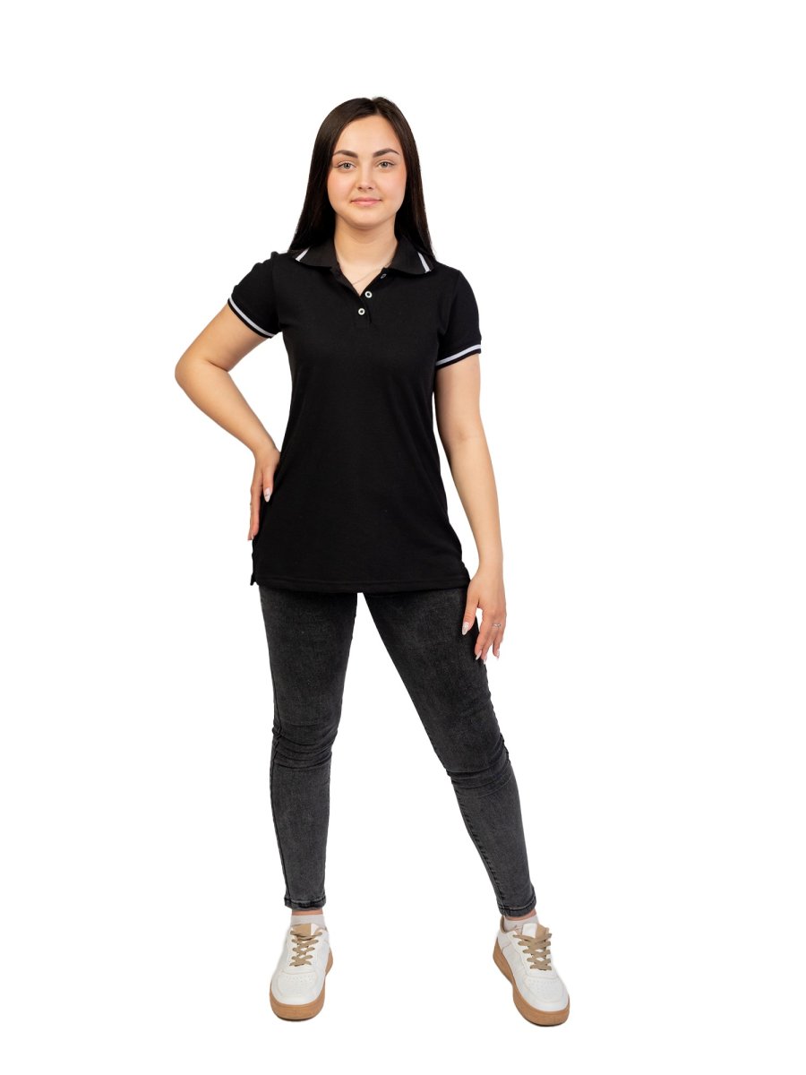 Легкая трикотажная рубашка с коротким рукавом – универсальная одежда в стиле casual для подростков, девушек и молодых женщин. Отлично подойдет для создания повседневного и спортивного образа. В ней удобно заниматься спортом, танцами, отдыхать на даче, путешествовать и т. д. Отлично сочетается с джинсами, бриджами, леггинсами, шортами. При отсутствии дресс-кода рубашка-поло уместна на работе и учебе, а также может быть использована для униформы. Свободно-прилегающий силуэт подходит практически любому типу фигуры, подчеркивает, но не утрирует женские формы. Модель удлиненная, что зрительно вытягивает фигуру и предохраняет от переохлаждения. Дизайн лаконичный – отложной воротник, застежка на три пуговицы, манжеты. Цвет черный с белой окантовкой. Тенниска изготовлена из 100% хлопка. Натуральный материал обеспечивает комфортное ношение, хорошее вентилирование кожи. При интенсивных тренировках и физической работе хорошо впитывает излишки влаги.